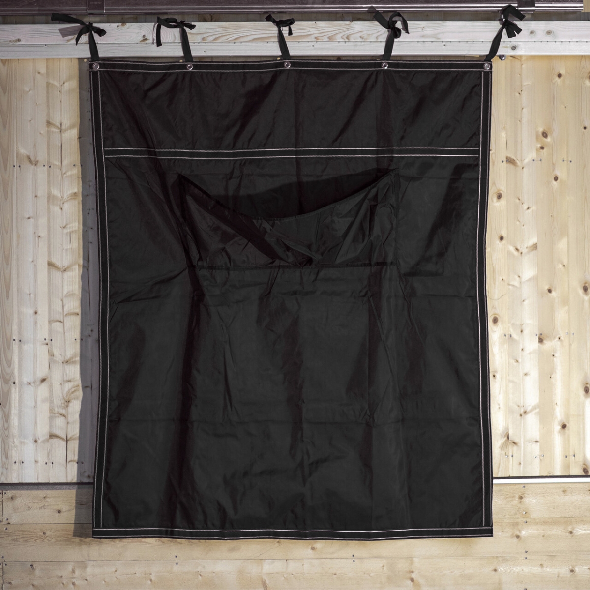 Klassisk boksgardin, der er velegnet til at tage med til konkurrencer. Holdbart, smuds- og vandafvisende materiale. Stilfuld kant. Fremstillet af nylon med øskener i toppen og bindebånd, der gør det nemmere at hænge gardinet op. Med en større lomme i midten, der fungerer perfekt til opbevaring af børster og bandager.