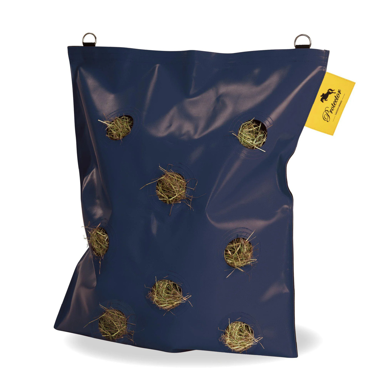 En smart höpåse som främjar ett naturligt ättempo och minskar spill. Tillverkad i slitstarkt, vattenavvisande material för daglig användning i både box och hage. Den rektangulära formen rymmer 10–12 kg hö och är enkel att fylla och hantera. Jämnt placerade utfodringshål (8 cm) ger ett kontrollerat flöde utan nät – för maximal säkerhet och komfort.Storlek: 100 × 80 cm