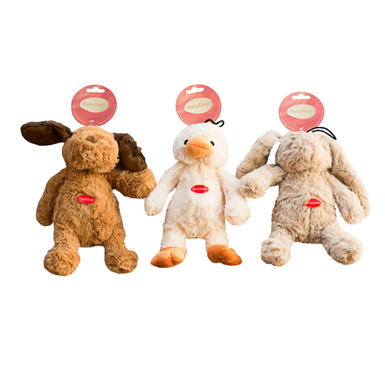 Eksklusivt legetøj af høj kvalitet fra Party Pet's premium segment "Elite". Legetøjet er ca. 25 cm langt og er med pibelyd. Der er tre forskellige modeller af legetøjet, hund, and og kanin.