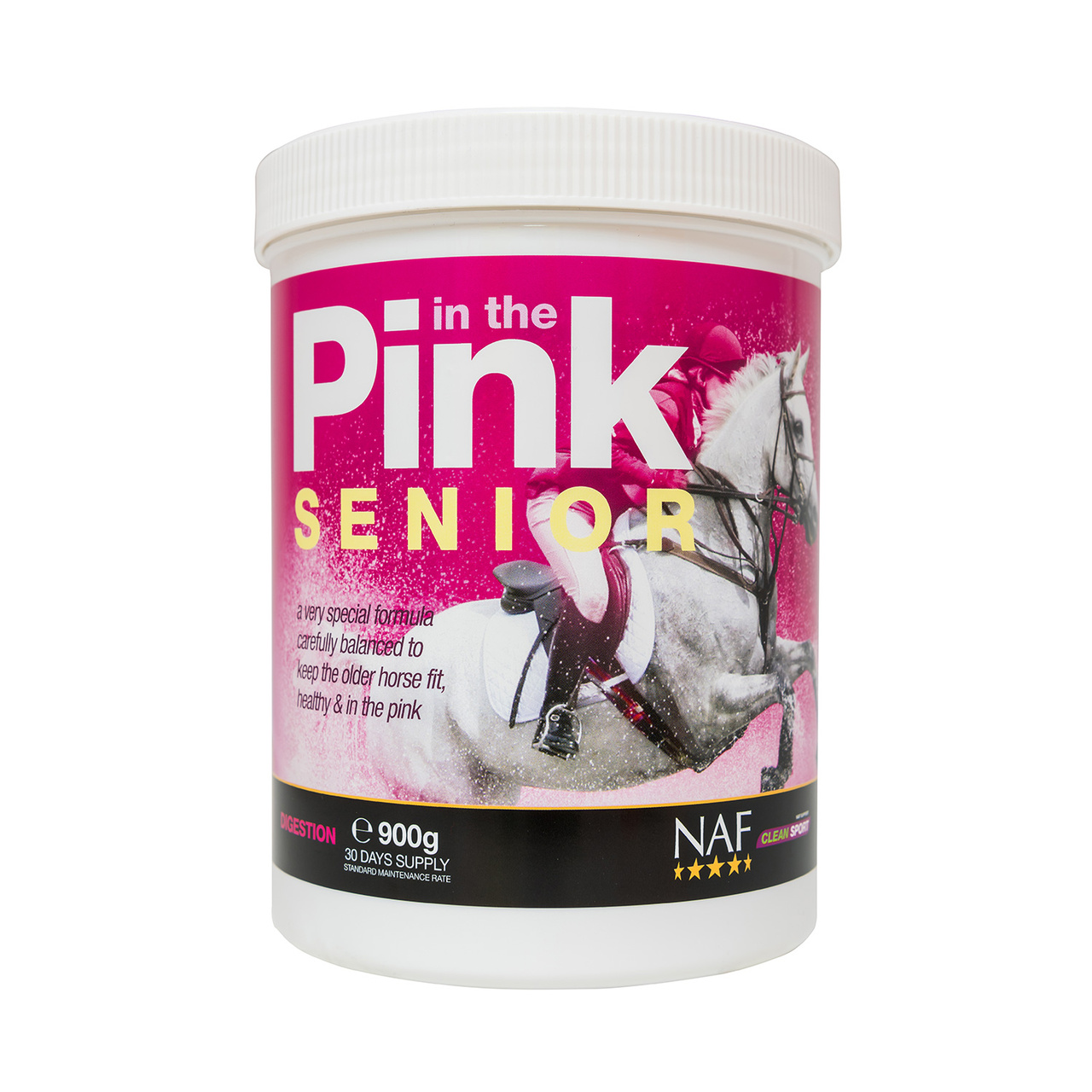 In the Pink Senior fra NAF er specielt designet til at opfylde alle de ernæringsmæssige krav til en ældre hest. Den er også designet til at give hesten al den støtte den behøver for at forblive aktiv og føle sig evigt ung. In the Pink Senior hjælper med at balancere kosten og fordøjelsessystemet, hvilket gør hesten i stand til at maksimere værdien af dens foderoptagelse.