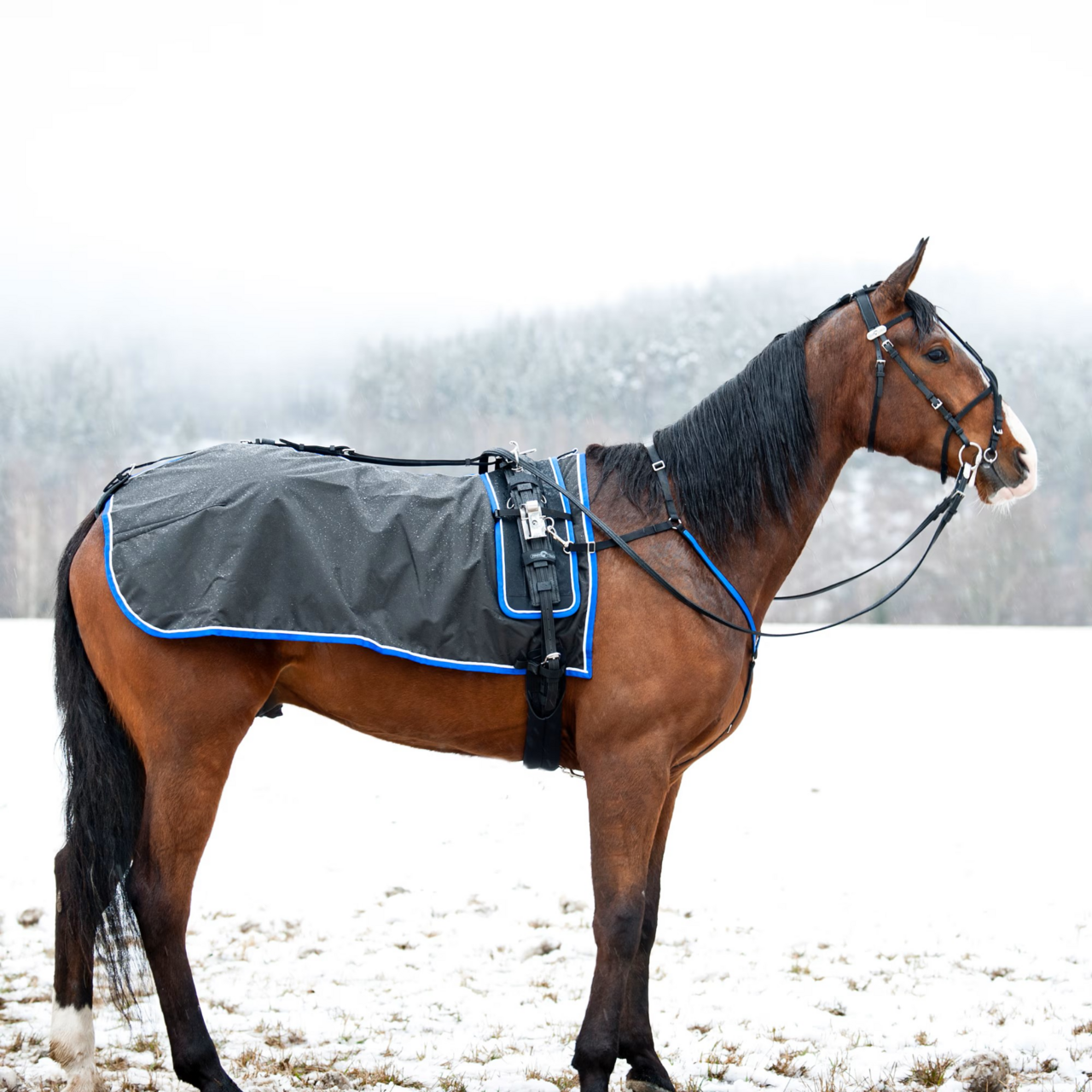 Körtäcke av vattenresistent Endura-tyg. Gjort för att användas under selen. Håller hästens rygg varm under träning. Täcket har mjukt fleecefoder. Två remmar på båda sidorna gör att täcket hålls bra på plats. (M = varmblodshästar eller hästar som använder ca. 135cm täcken. / L = stora varmblodshästar och kallblodshästar som använder ca. 145cm täcken.)