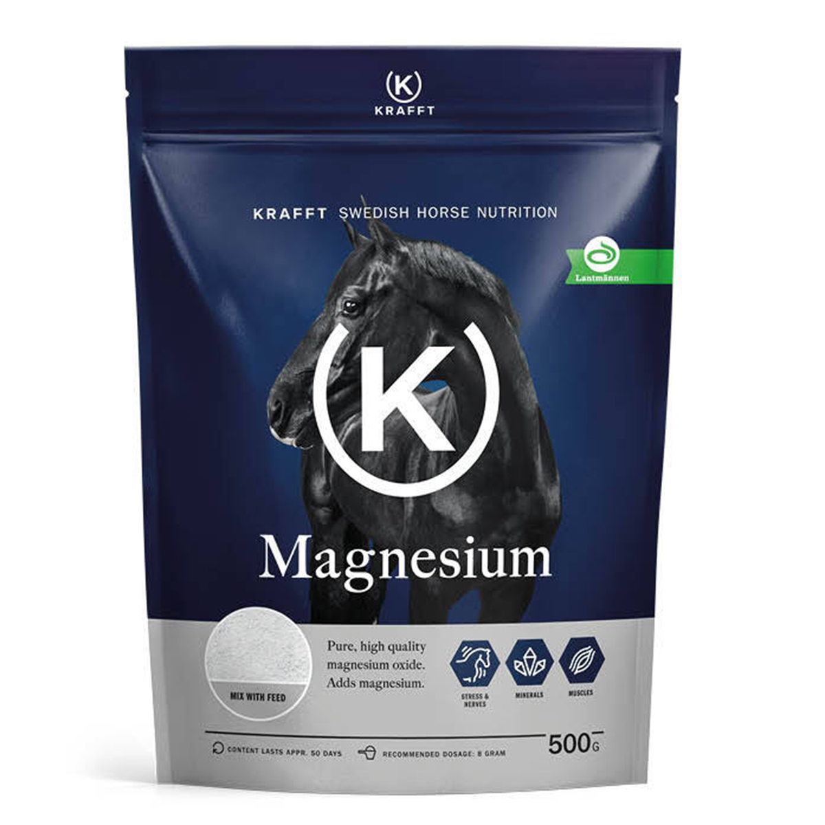 Brist på magnesium kan påverka muskelfunktionen och hästens mentala balans. Detta tillskott förebygger och avhjälper magnesiumbrist. Används vid lågt magnesium-innehåll i grovfodret, vid hård träning och vid konstaterad brist (via blodprov).