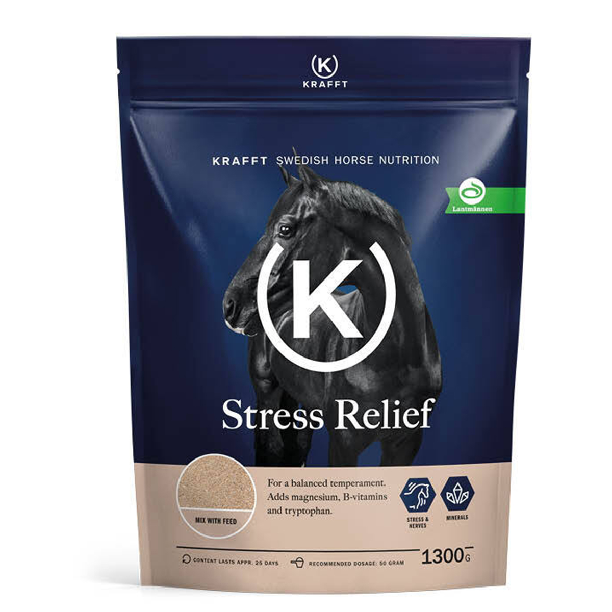 Stress Relief är ett tillskott framtaget för att balansera temperamentet hos den stressade hästen. Ett väl sammansatt tillskott med tryptofan, magnesium och B-vitaminer som kan hjälpa till att balansera hästens temperament i stressade situationer. Med ett starkt psyke är det lättare att nå framgång.