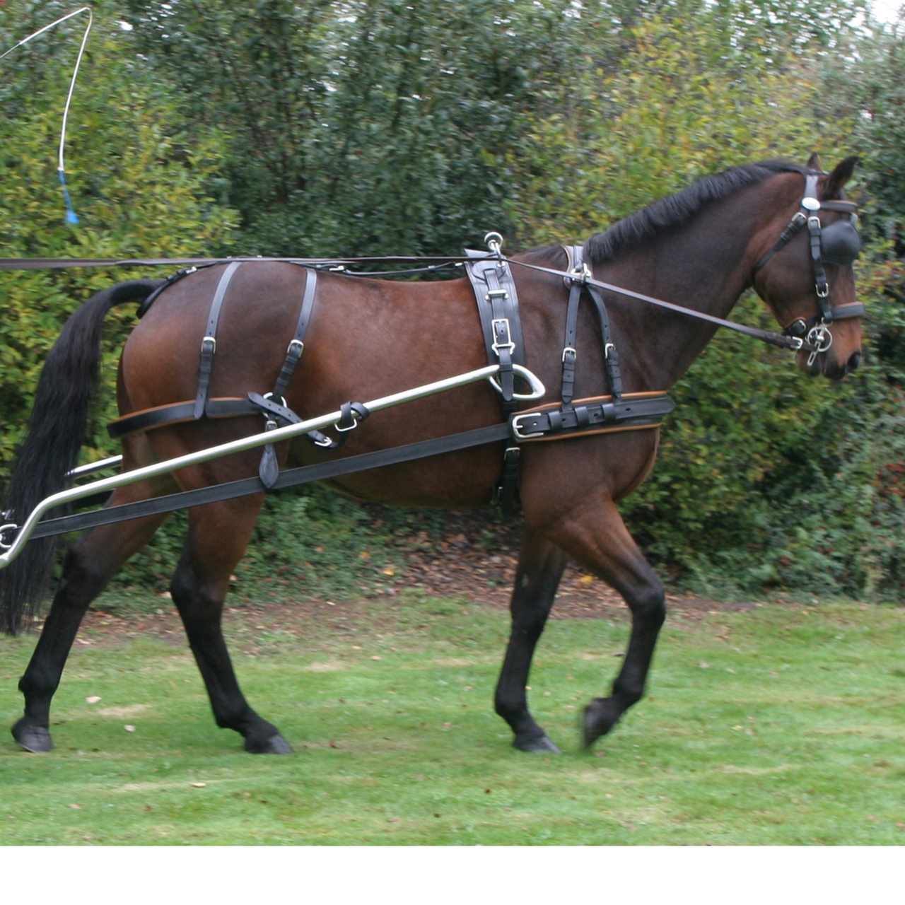 Polstret betræk og lidt bredere foret bryst. Nylon forstærket. Komplet med rygsele, trækliner, tømme med indvævede gummitråde og hovedhold. Faste trækliner og beslag. Lædertømme medfølger.