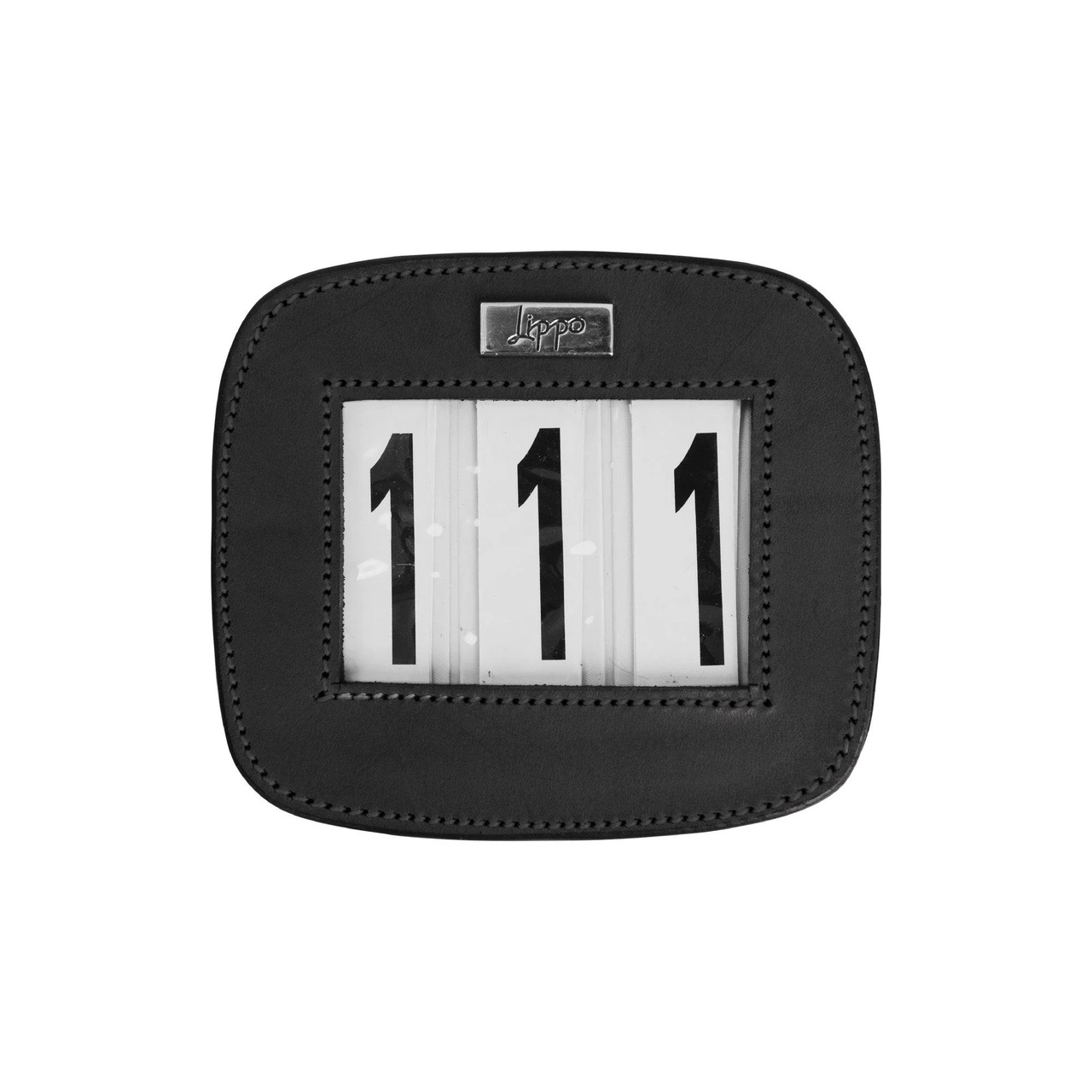 Stilren nummerlapp i läder med silver logga. Nummerlappen kan fästas på flera olika sätt, exempelvis på schabraket, förbygeln, tränset eller stigbygeln, med hjälp av antingen en säkerhetsnål eller en avtagbar elastisk kardborre för säker fastsättning. De plastade numren är slitstarka och lätta att hålla rena.