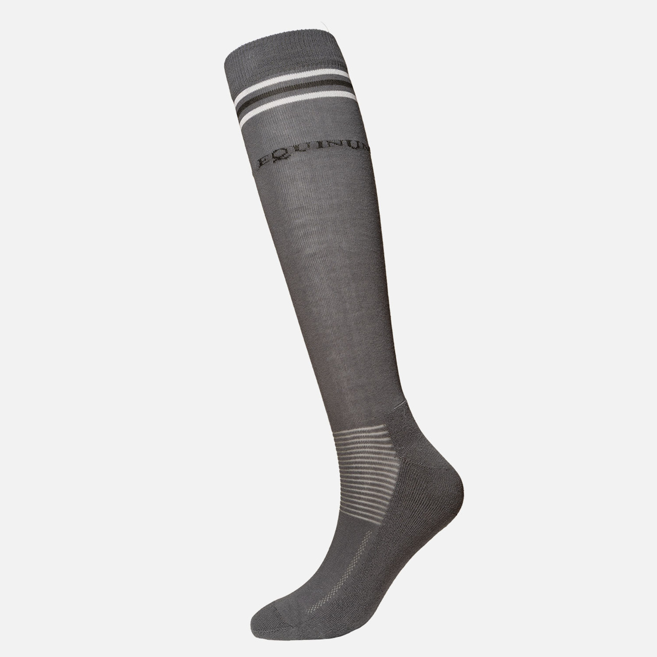 Stretchig ridstrumpa. Designad med kanalstickning vid vristen för en flexibel passform och en något tjockare fotdel för extra komfort. Den har bra andningsförmåga och är detaljerad med stilrena ränder samt en logga vid knät.