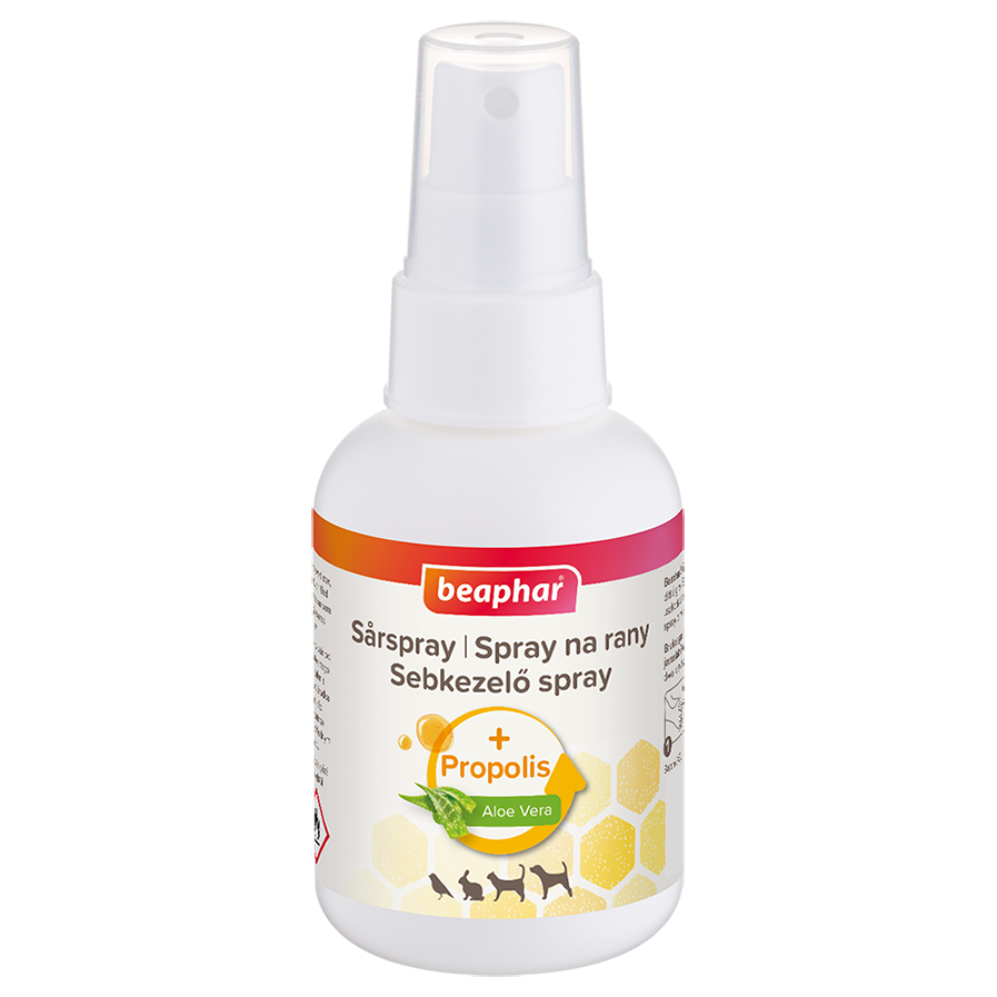 Sårspray som på ett snabbt och enkelt sätt att lugna och skydda ytliga sår, torr och skadad hud på katter, hundar, fåglar och smådjur.