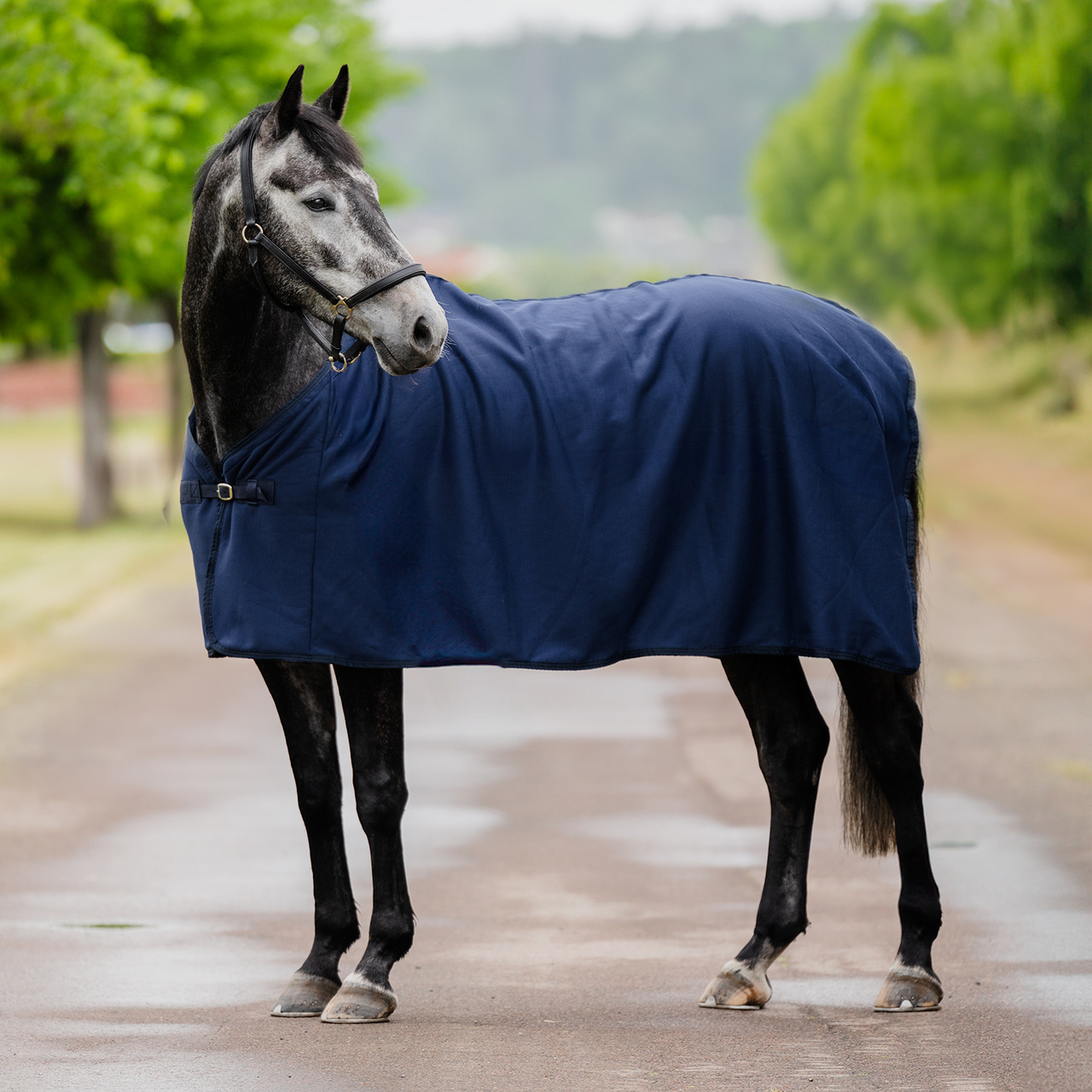 Fleecetäcke med slät utsida. Passar utmärkt att trycka eller brodera på. Ett frontspänne och svansrem.